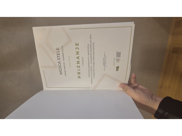 Naša sodelavka Mojca je prejela posebno priznanje za doprinos k panogi.