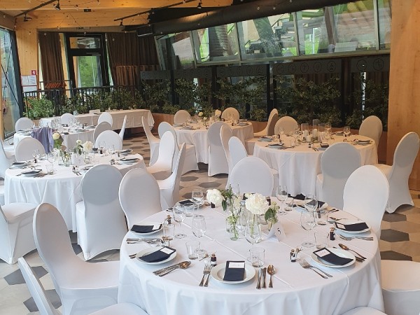 Poročno slavje vam pripravimo v najnovejših kapacitetah v večnamenskem prostoru Tuhinjka. Dvorana omogoča različne razporeditve miz glede na želeni sedežni red svatov in število gostov. V dvorani organiziramo poroko za minimalno 50 in maksimalno 80 oseb.