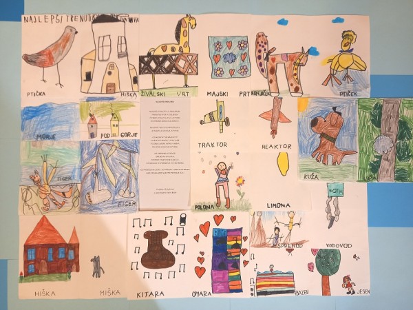 V termah so prejeli tudi otroške risbe z rimami, ki so jih ustvarili otroci Osnovne šole Šmartno, podružnična šola Zgornji Tuhinj, udeleženci dogodka so si lahko ogledali razstavo prispelih risb.