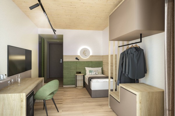 Naša enoposteljna soba v novem NaturHotelu Snovik je zasnovana kot vaše osebno zatočišče – idealno za poslovne goste, ki iščejo mirno delovno okolje, ali posameznike, ki si želite odmika od vsakdanjega vrveža.